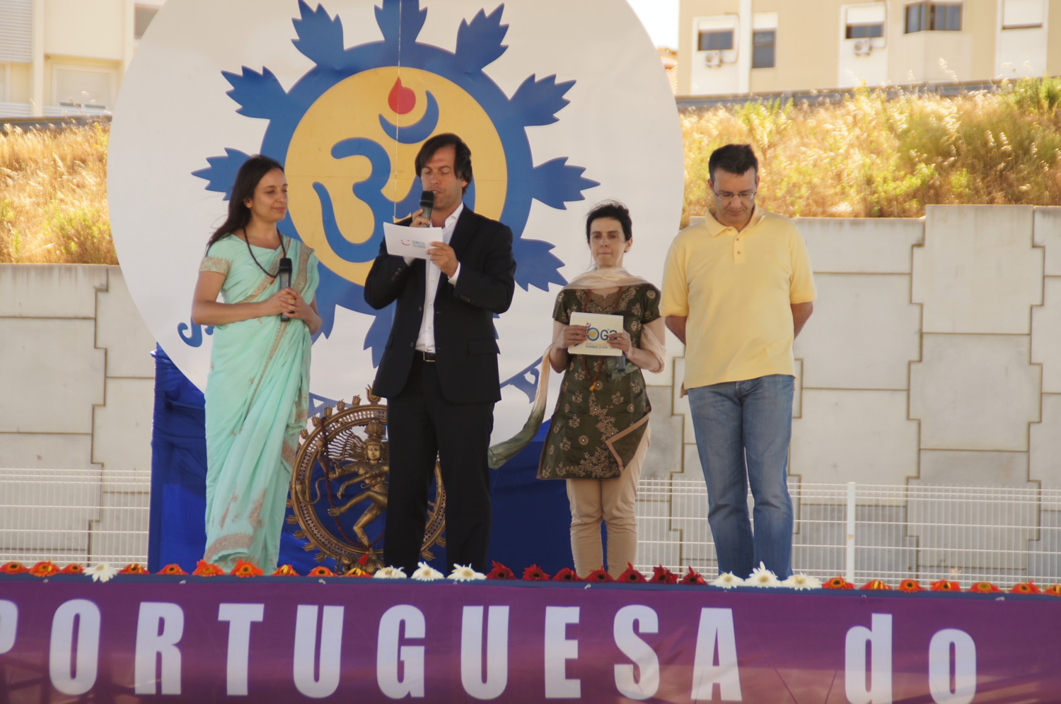 The city of Lisboa has become one more time the International center of the Grand Celebration of the International Day of Yoga (IDY). Associated to this First Inter Ethnic, Inter Cultural, and Inter Religious World Day, the Day of Light, when the Human DNA is celebrated, were present The City Councilmen of Sports and Education of Lisbon’s City Hall - Dr. Manuel Brito, Dr. Maria Barroso, the Ambassador of India in Portugal – Mr. B. B. Tyagi, Prof. Moniz Pereira and Rão Kyao.